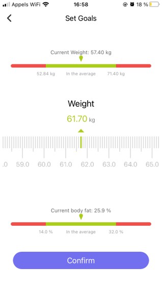 Once you have confirmed, your goals will appear on your dashboard, just below your weight.
