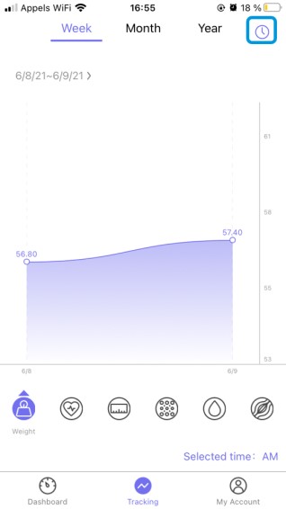 To do this, go to "Tracking" and click on the clock icon at the top right of the screen to open your data history.