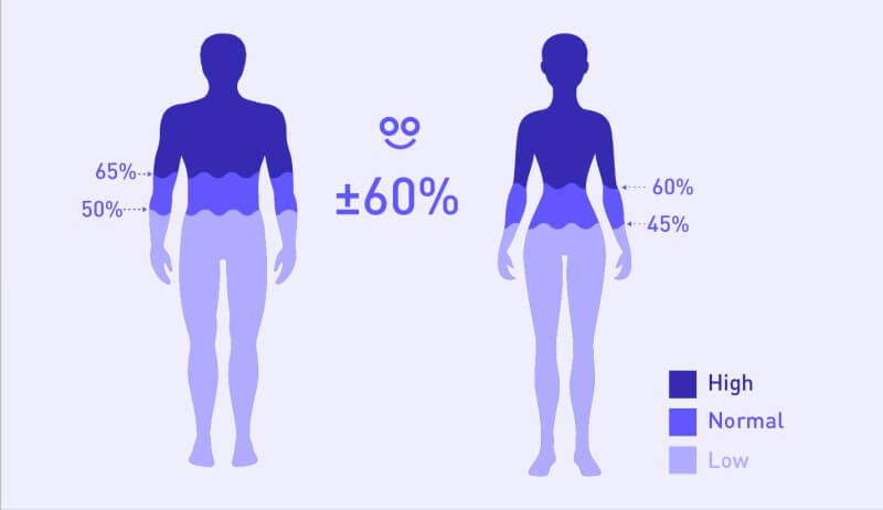 This is the body measure that should be monitored and compared with the others: when your total weight starts to decrease, check that it is fat you are losing and not water or muscle, while remaining within the average range so as not to disturb the body's functions.