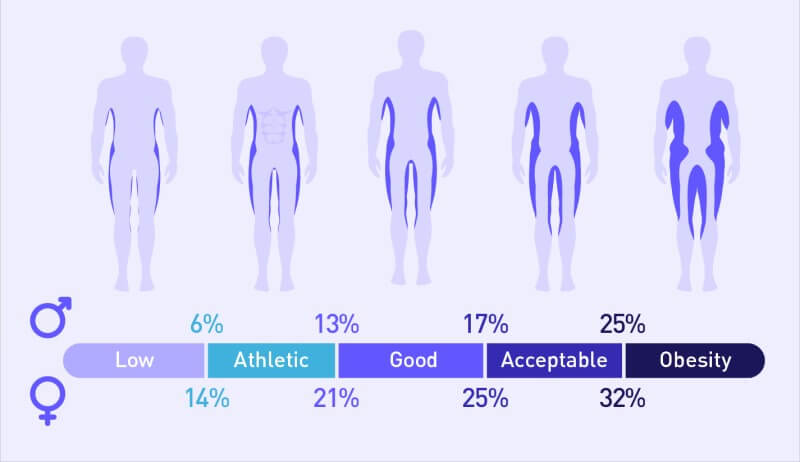 The body fat index, BFI, measures the amount of fat in the whole body as a percentage of the total weight. It is highly gendered: men and women do not have the same needs. This is a result of prehistoric times when the body built up reserves in case of famine and pregnancy.