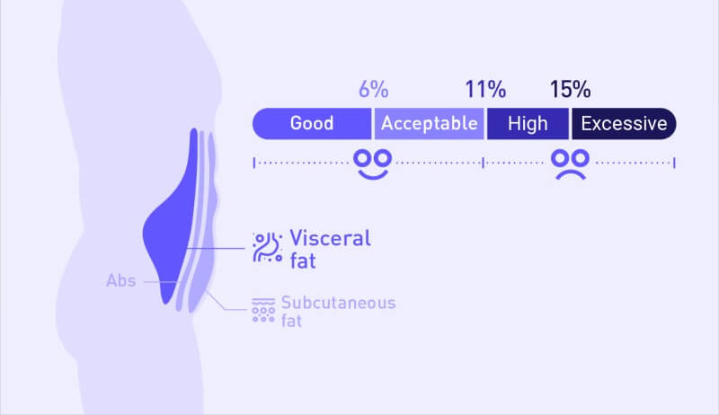 With a range of 0 to 20, if the scale gives you a score of less than or equal to 6 it is good, from 7 to 11 it is acceptable, at 14 it is high and at 15 it is too high. Do you have excess visceral fat? That's a good body measure of a problem that does not immediately translate into extra centimetres. This way, you can quickly prevent the risks and take action to reduce them.