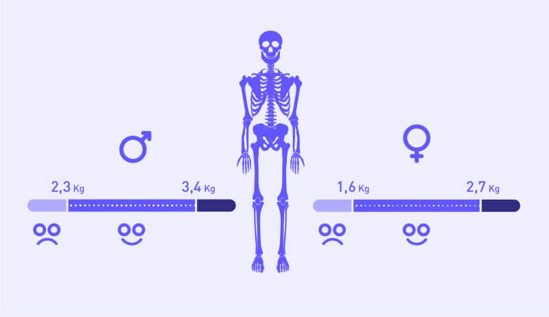 This body measure evaluates the weight of your skeleton in your total weight. But most importantly, it reveals the variations in your bone density: this density increases until the age of 30. It then depends on a good intake of calcium and especially vitamin D, which helps to fix it on the bones.