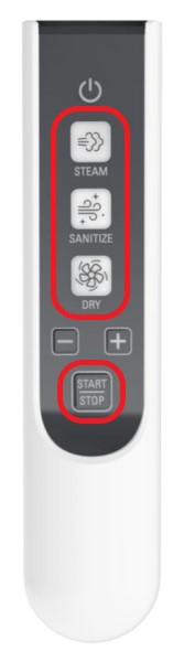 To change the programme, use the remote control and click on one of the 3 central buttons. For example, if you want to activate the Dry mode, click on the Dry button and click on the start/stop button to start the programme.
