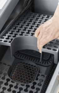 Lift the shelf, remove the filter and remove any residue with a sponge.