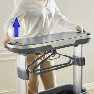 The dewrinkling cabinet should be raised as high as possible until you hear the locking click, otherwise the masts will drop back down during use. Check that the small pins are sticking out at the back of the appliance.
